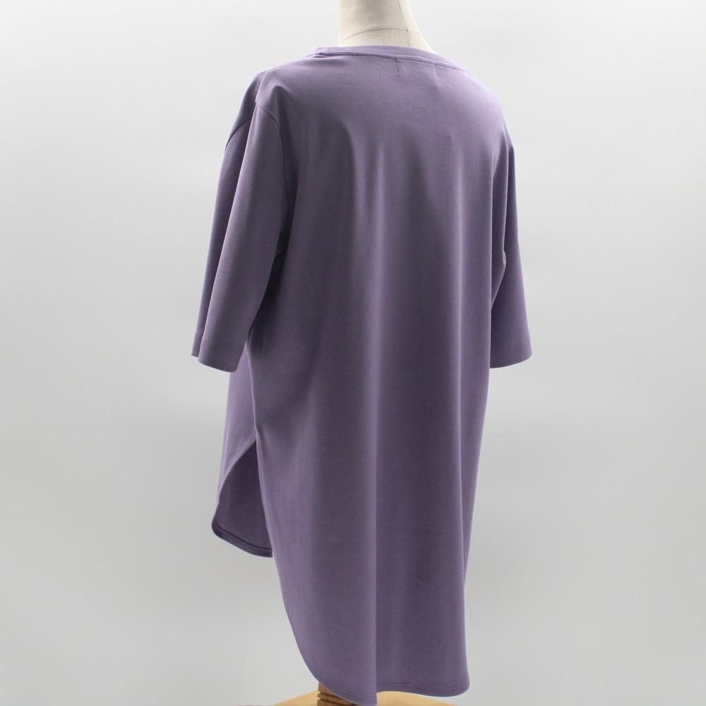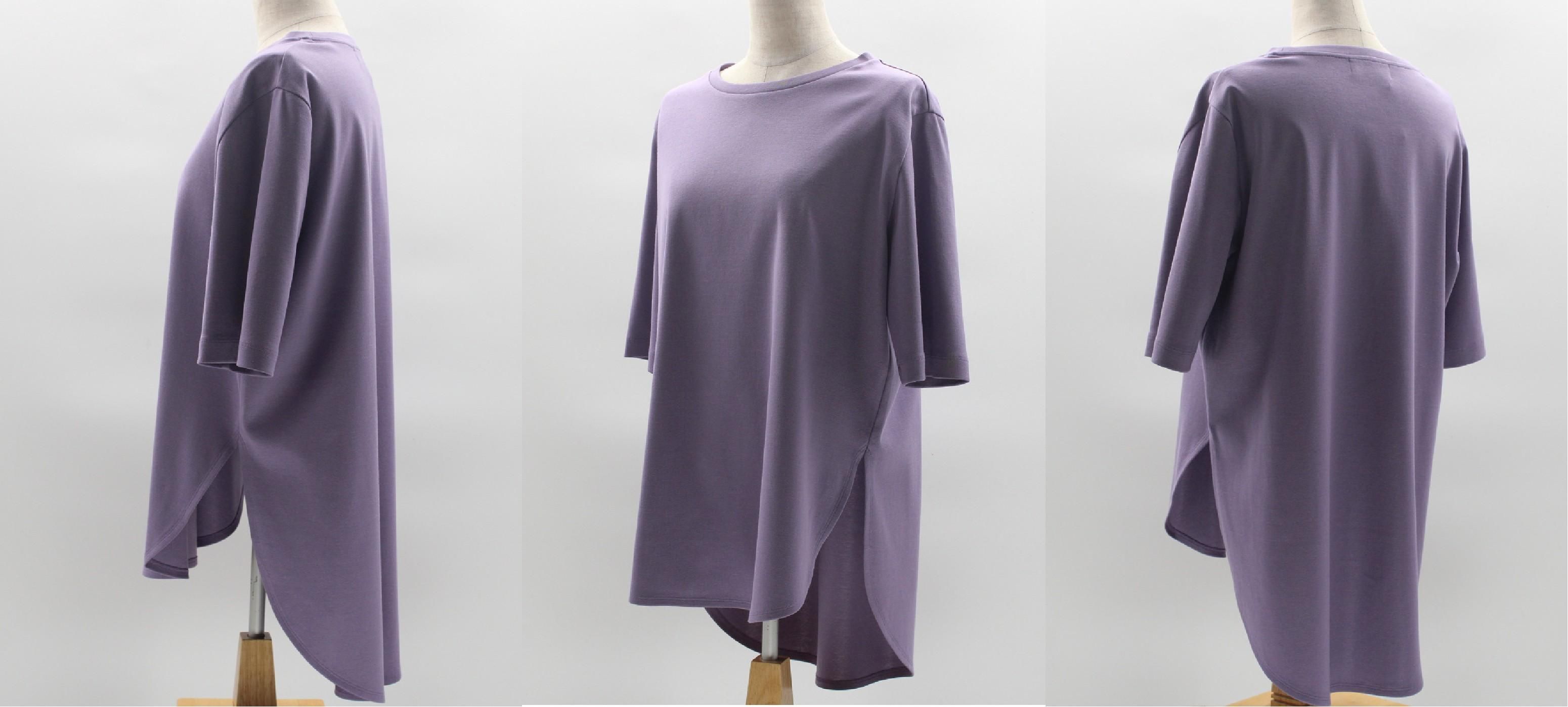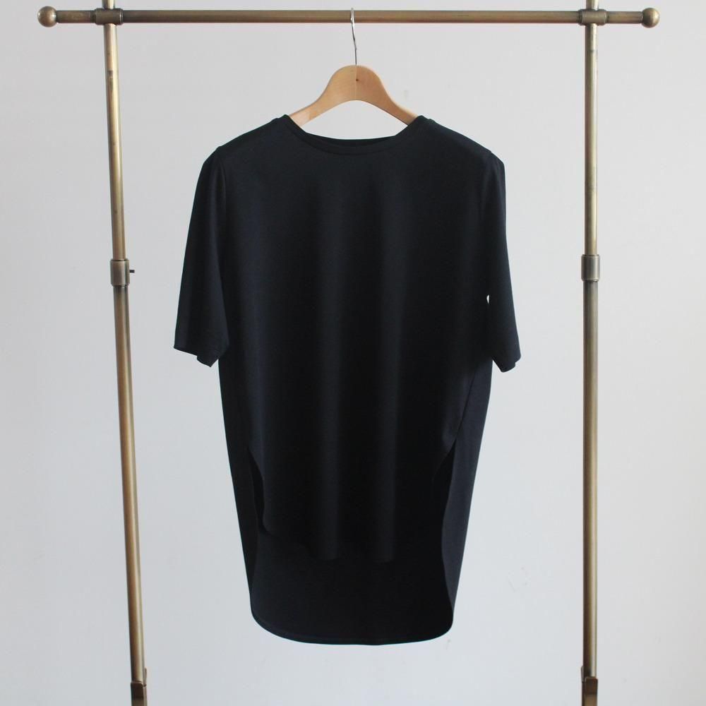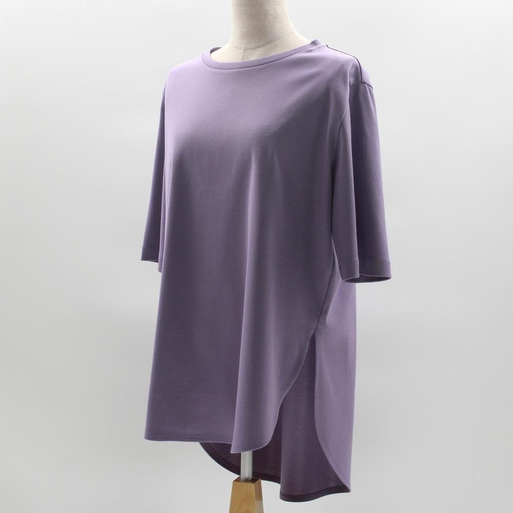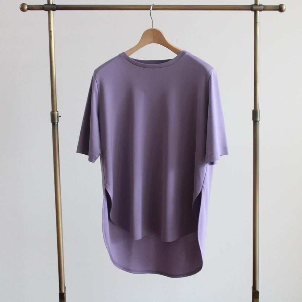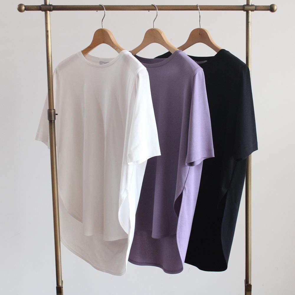 少し丈長めのラウンドヘムTシャツ。