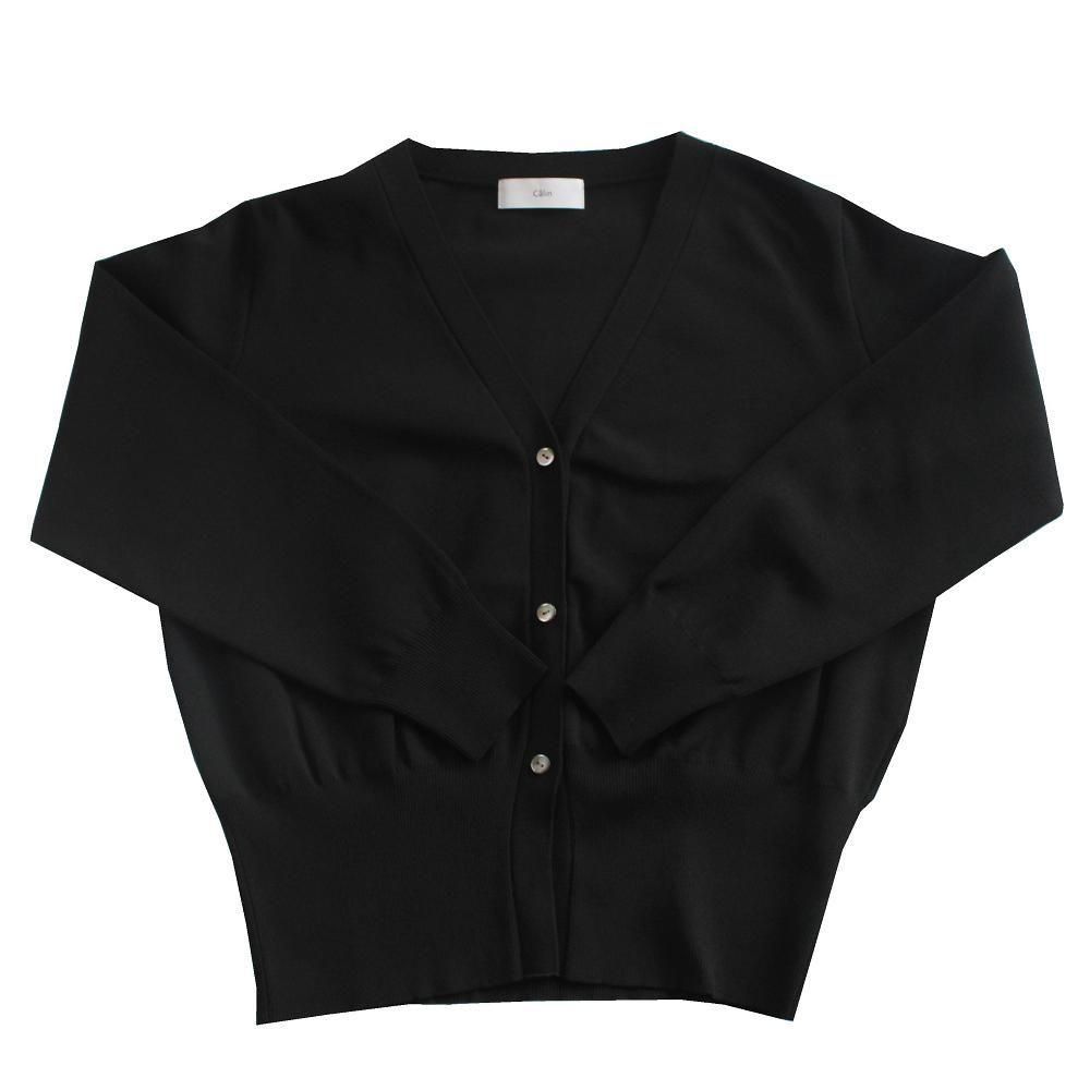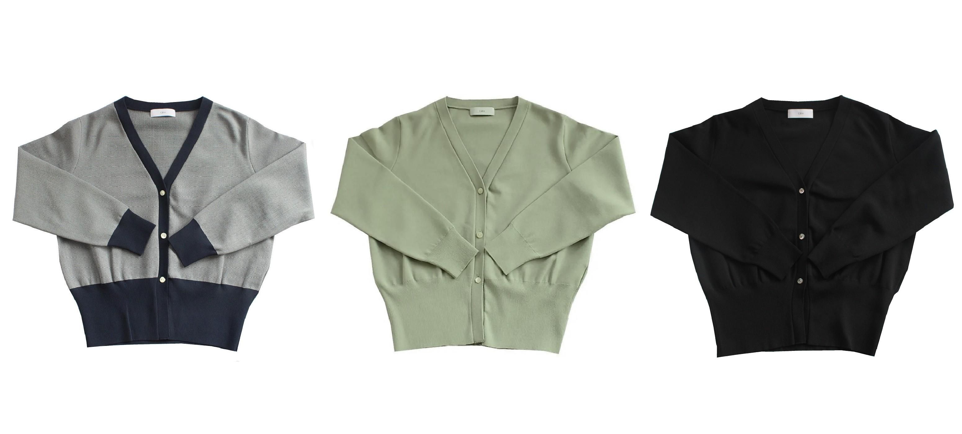 レーヨンのドライタッチストレッチ糸を使用したハイゲージミラノリブカーディガン。